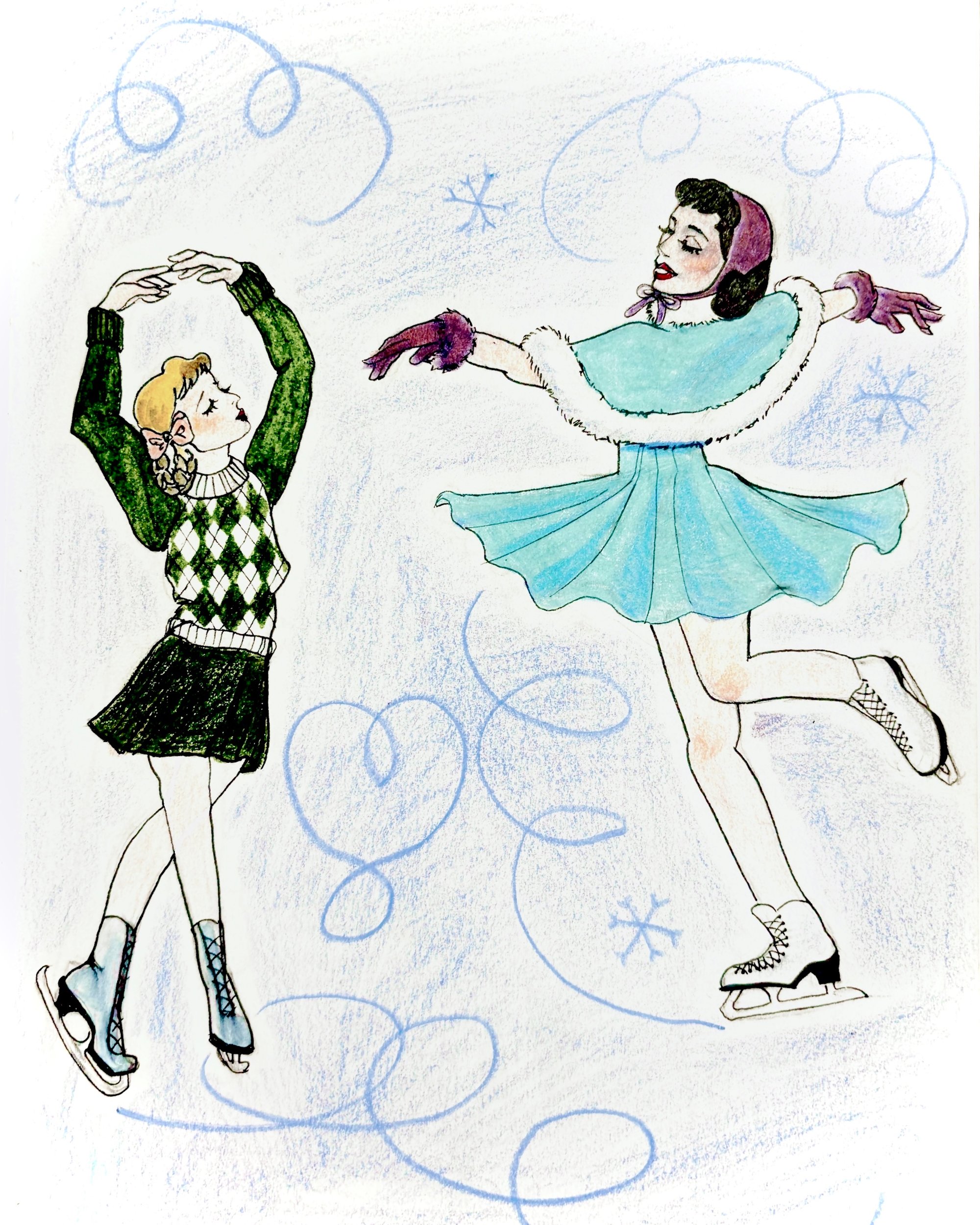 8x10” print of original Ice Skaters artwork by Rebecca Belaire